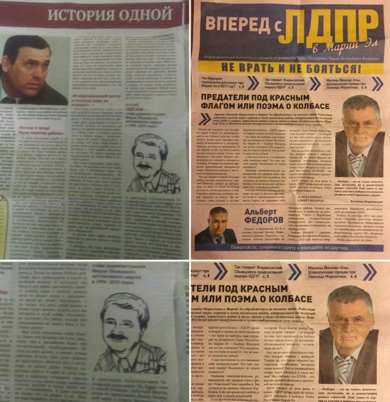 • • Далее. Недавно кандидат от КПРФ на должность губернатора опять-таки одной из уральских областей мощно прославился на всю округу. Данный товарищ в предвыборном агитационном “боевом листке” обнародовал фотографию, где он в окружении ста каратистов гордо стоит в спортзале. Причём лица этих самых ста каратистов в белых кимоно специально и усердно замазаны. А сейчас представьте какая конечная картинка получилась в его газете в стиле фильма-хоррора“Звонок” Горома Вербински: одинокий коммунист среди сотни восставших светлых демонов с искажёнными головами. Секрет сего забавного момента заключается в федеральном законе, который [упрощённо] гласит — “Использование в АПМ-материалах фото людей, не являющихся кандидатами, строго запрещено”, где основополагающий фактор упирается в оплату с избирфонда кандидата. Нерастерявшийся штаб Александра Евстифеева без тоски поступил творчески и художественно. Позитивно отзывающихся об Александре Александровиче статусных персон они преспокойно… нарисовали. Да, не комиксы, но ограничительную норму-то ведь обошли [впрочем, подобный способ применяется уже практически всюду]. Правда, марийские ЛДПР-овцы совсем не заморачивалась. Упомянутая проунитарная партия супротив требуемому распечатала на первой полосе своей газеты прямиком двух граждан одновременно: их выдвиженца Альберта Фёдорова, где он рассказывал о крутых амбициях и о том, что он наш земляк [уроженец РМЭ и у-сё, его марийское происхождение как бы рекомендовали не выпячивать], и бессменного шэфа Владимира Жириновского. Босс Владимир Вольфович в свойственной ему экспрессивной манере в очерке “Предатели под красным флагом или поэма о колбасе” громил местных коммунистов за неучастие в выборах. Вроде бы радуйся началу политического банкротства идейных врагов и помалкивай, протирая ручки — ан, нет. С другой стороны у самой ЛДПР в федеральной программе есть фееричный коматозный пункт о губернизации России, то есть укрупнении субъектов федерации — уничтожении российских республик и областей, сулящий прямой фактической ликвидацией Республики Марий Эл, как национально-территориальной единицы. Угрожают, почём зря. Очевидное дело, обозначенное ни под каким предлогом и залогом неприемлемо. Благо, господин Фёдоров категорически отрицает расписанный пункт. Но интересно иное: они попадают под выше разложенный закон об АПМ? Или ситуация особенная. Наверное, да — отличается. Хотя нет, грубовато. Неужели нагло сговорились и на нарушение закона их политические противники с госслужащими обоюдно закрывают глаза? Наш гуманный ЦИК разберётся, вдруг из оппонентов кто жалобу накатал — следствие выяснит. Эх, лучше бы марийский жириновец с удочкой или динамитом в руках попозировал возле пруда, типа рыбачит честный гражданин. И снизу надпись “Рецепт вяленой рыбы от Альберта Фёдорова”. А что? Звучит! ▼