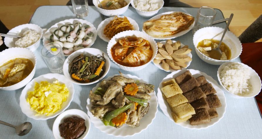 Тут изображено не что иное, как «скромное» утреннее яство обычной пхеньянской семьи, которое на моих глазах привезли в тарелках нашим героям для съемок. Я — как человек внимательный и любопытный — заглядывал в холодильник и шкафы в той квартире, где мы снимали, так вот холодильник был пуст. Что самое интересное: когда еду поставили на стол перед нашей семьей, сопровождающему потребовалось немало усилий, чтобы заставить их это есть. После съемок еда была упакована и увезена. Кроме этих съемок я вообще ни разу не видел, чтобы северокорейцы где-то ели.