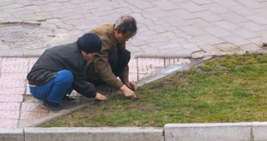 Хотя в Пхеньяне много людей живут в бараках, на производствах, какая-то часть населения все-таки обитает в квартирах. Напротив нашей гостиницы, например, был многоквартирный дом, который отапливался дровами и углем. Зимой из труб картинно шел дым. Вдоль улиц с домами засеяны газоны, и за ними следят конкретные жильцы; старики носят ведра и тазики с водой и буквально щипцами выбирают из травы желтые травинки. Иногда они следят, чтобы никто не прошелся по газону и не встал на него ногой. Видимо, каждому жителю отведена своя зона для возделывания газона, и он воспринимает это как большую ответственность.
