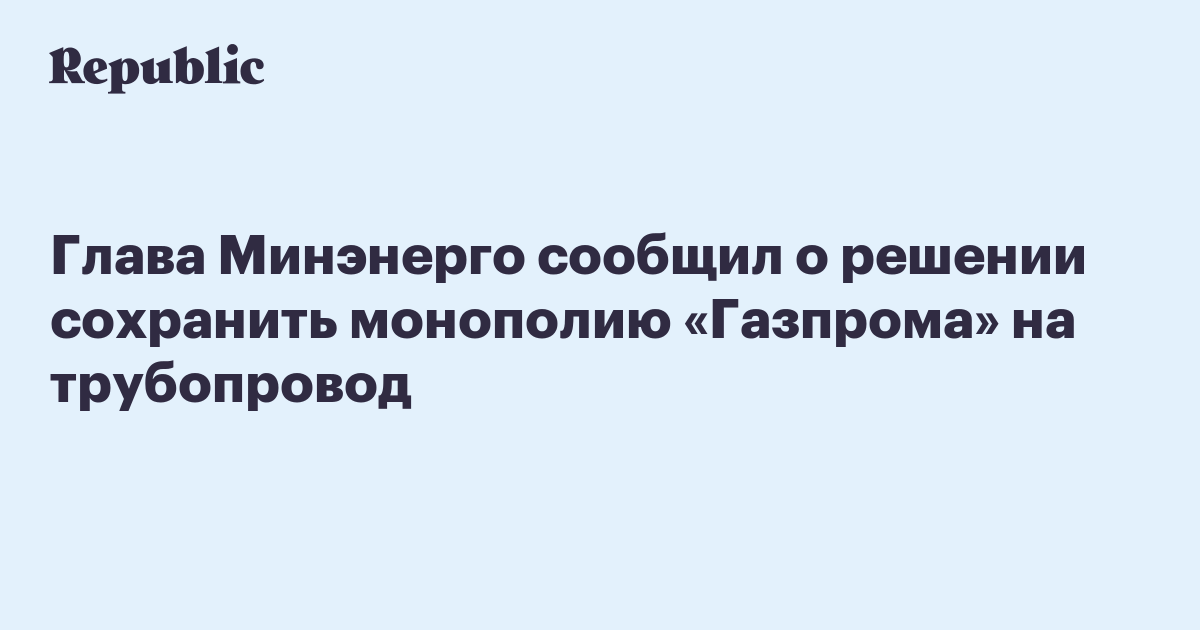Глава Минэнерго сообщил о решении сохранить монополию «Газпрома» на трубопровод