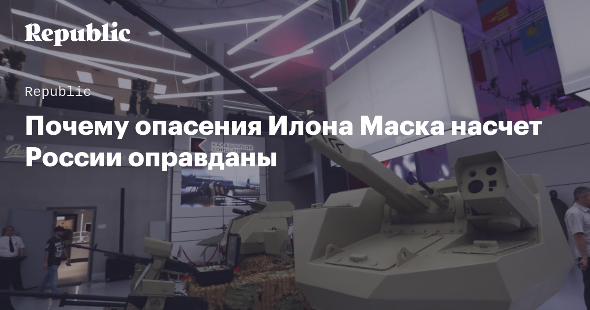Илон Маск обеспокоен действиями властей, особенно российских. По словам создателя Tesla и Hyperloop, они соревнуются за превосходство в сфере искусственного интеллекта и подталкивают планету к третьей мировой войне. Заявление Маска настораживает еще больше, если учесть, что мир не питает каких-либо надежд в отношении России – государства, которое всего лишь несколько лет назад американский сенатор Джон Маккейн назвал «бензоколонкой, пытающейся выдать себя за страну».