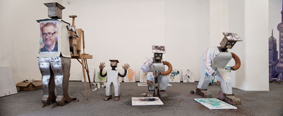 — Да, это работы реальных людей, крестьян, которые в своих деревнях сделали все эти макеты авианосцев, подводных лодок, роботов, летающих тарелок и пр. Я собрал их в общую инсталляцию, чтобы продемонстрировать миру, во что они верят, о чем мечтают.
