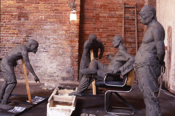 — Скульптурная композиция «Двор сборщика податей» является знаковым произведением для соцреалистического искусства Китая. Она изображает двор помещика, собирающего барщину с крестьян и отбирающего у них последний кусок хлеба. «Двор» состоит из более сотни скульптур, которые художники выполнили по заказу государства. В моем случае важно не то, что я скопировал сами скульптуры, повторил их и показал западному зрителю. В инсталляции помимо прочего я обнажил сам процесс создания скульптур — и это было самое главное для меня. Меня интересовала судьба художников в ту эпоху. Им поручили создать работу, они вынуждены были сделать ее как заказ в рамках официальной пропаганды. При этом авторы, создававшие эти скульптуры, — они ведь были воодушевлены этими идеями и с готовностью и энтузиазмом принялись за дело. Это сейчас мы, преодолев историческую дистанцию, оглядываемся назад и считаем, что они работали по принуждению. Художники верили в утопические идеи и в своих произведениях ругали прошлое в пользу светлого будущего. В этом и заключается антиномия моего проекта для павильона в Венеции.