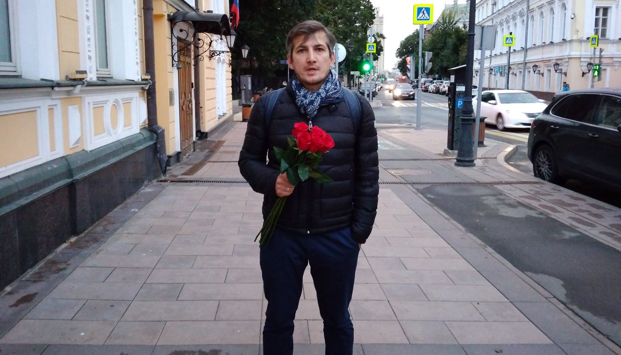 3 сентября около посольства Мьянмы в Москве прошел несанкционированный митинг против преследования мусульман-рохинджа — полиция не стала вмешиваться в его проведение. 8 сентября на том же месте должна была пройти новая акция, но столичные власти отказались ее согласовать. И тогда организатор митинга, журналист и писатель Арслан Хасавов решил явиться туда с одиночным пикетом — он встал возле ограждения рядом с посольством Мьянмы (ближе не пустила перекрывшая улицу полиция; вдоль дороги были припаркованы около десяти автозаков) с букетом красных роз.