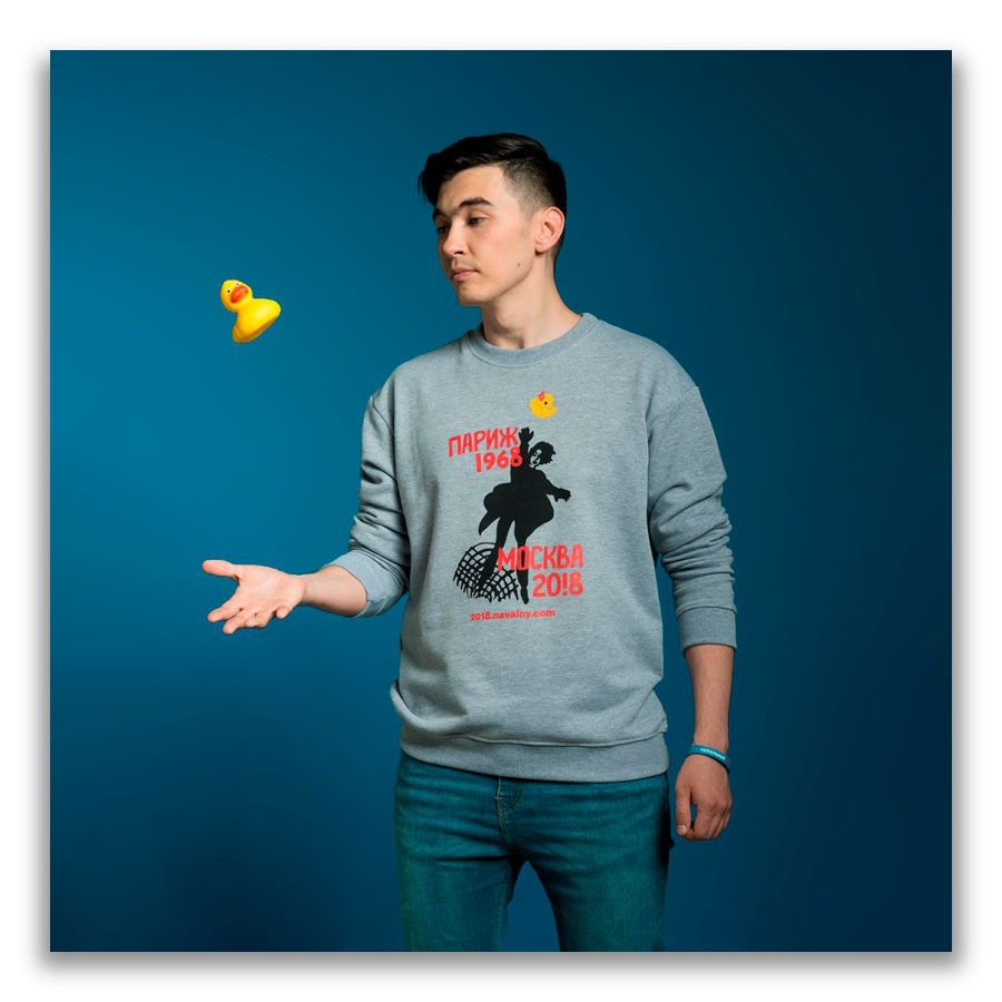 Opposition politician Alexey Navalny is now selling campaign swag featuring an inscription that reads, “Paris 1968 — Moscow 2018,” with the drawing of a woman throwing a rubber duck in place of a brick.
