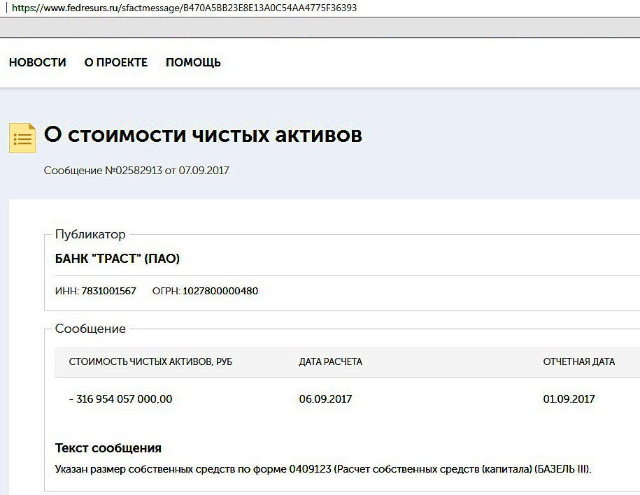 Информация о резком увеличении дыры в банке появилась в Едином федеральном реестре сведений о фактах деятельности юридических лиц, где в том числе и банки обязаны ежемесячно публиковать основные данные о своей деятельности.