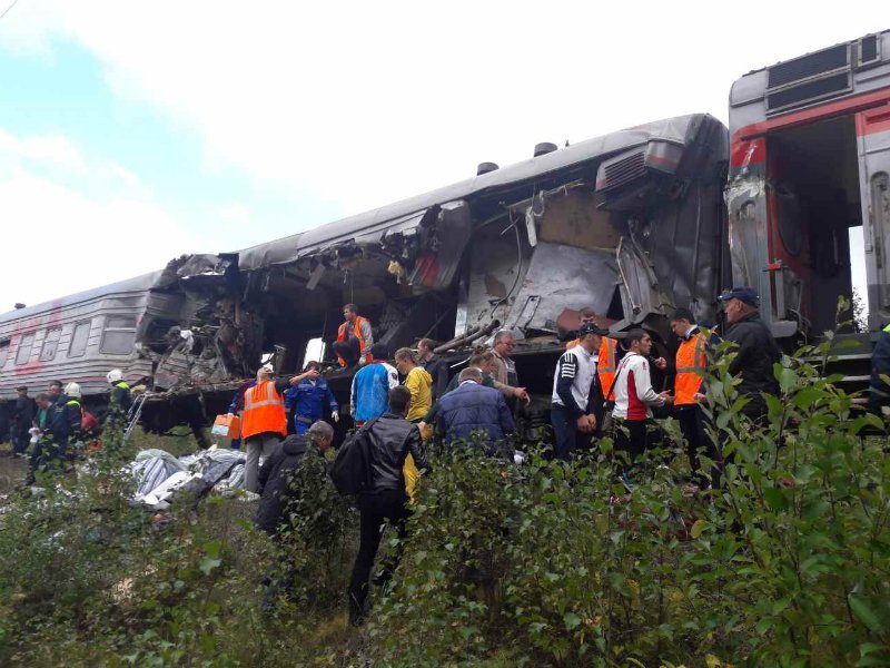 По последним данным, в результате столкновения сошла с рельсов тележка пятого вагона, пострадали 15 пассажиров, включая четверых детей.