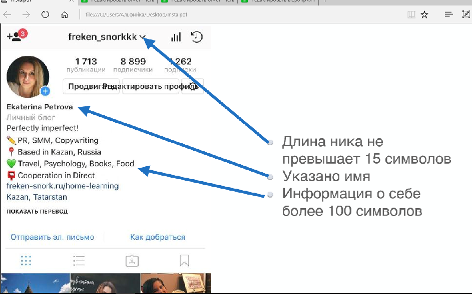 Хорошая досягаемость подписчиков. Ваш пост не теряется в ленте и выходит одним из первых или в середине. Длина ника не должна превышать 15 символов. Ник должен быть удобным и запоминающимся. Должно быть указано настоящее имя или название организации. Каждый, кто зайдет на вашу страницу, будет знать, с кем имеет дело.