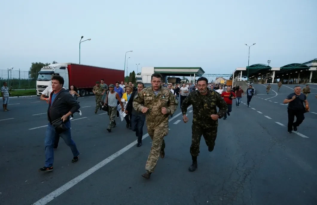 Группа активистов и бойцов батальона «Донбасс», что добрались из лагеря от КПП «Краковец», неожиданно «оттеснили пограничников и вывели Михаила из транзитной зоны по живому коридору».