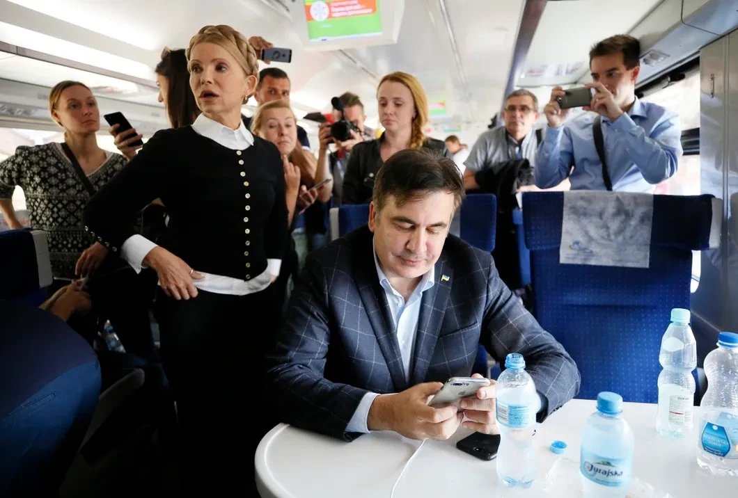 И тут по громкой связи — женский, дрожащий от волнения голос: «Согласно распоряжению руководства «Укрзализныци», мы не отправимся в рейс, пока лицо, которому запрещен въезд в Украину, не покинет поезд. Благодарим за понимание!» Саакашвили, Юлия Тимошенко, другие депутаты и активисты, окруженные прессой, проталкиваются в тамбур — советоваться, выходить в эфир.