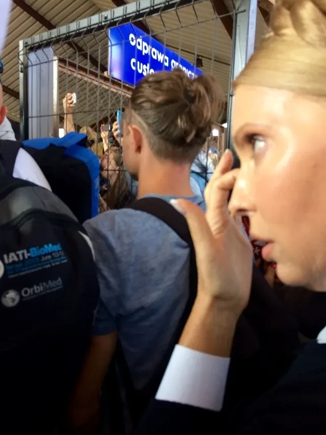 В 11.00 организаторы предложили прессе, скопившейся на КПП «Краковец», не нервничать по поводу отсутствия интернета, а совершить марш-бросок в Польшу — слава безвизу! — чтобы там поучаствовать в брифинге и всем вместе вернуться назад. Минивэном, куда в том числе определили и меня, рулил киевлянин Андрей, представившийся «другом батальона «Донбасс». Процедуры на обеих сторонах границы мы проходили беспрецедентно долго. Потом летели по автобану, понимая, что опоздали, разминулись, пока Андрею не позвонили: вступил в силу план «Б». По Жешуву отбой, гоните в Пшемышль на железнодорожный вокзал, к скоростному «Интерсити», что с минуты на минуту отправится на Киев — Саакашвили уже на перроне общается с народом.