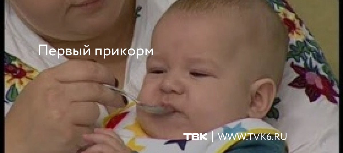 Маленький Миша дебютировал в эфире и попробовал первый прикорм. Кстати, прикорм вводится детям не ранее 17 и не позже 26 недели жизни ребенка.В качестве первого продукта прикорма может явиться каша или овощи.