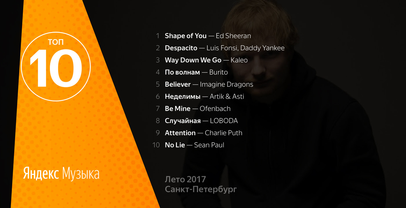 В целом рейтинг самых популярных песен среди петербуржцев схож с общероссийским.