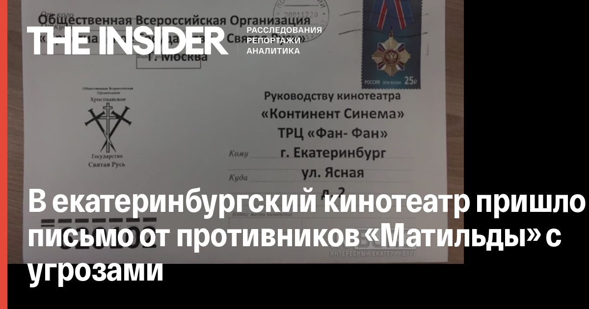 В екатеринбургский кинотеатр пришло письмо от противников «Матильды» с угрозами