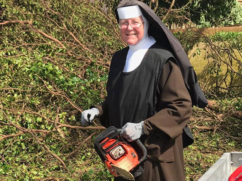 На размещенном видео монашка в традиционном одеянии и головном уборе действует ручной бензопилой. "Молитвы - это великое дело, но молитва, сопровождаемая реальными делами - еще круче", - сделали вывод пользователи соцсети. Многие из них признались, что ранее представляли себе монахов беспомощными и безынициативными людьми. Также члены новоявленного фан-клуба сестры Маргарет Энн отмечают, что монашеское платье все-таки не лучшая спецодежда при подобных работах, и обмениваются советами по технике безопасности.