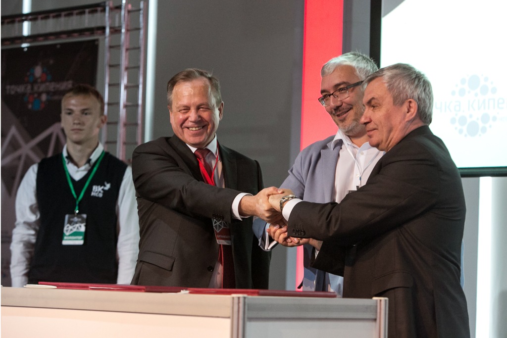 Во время пленарного заседания, посвященного запуску нового формата работы в рамках Национальной технологической инициативы, был подписан основной документ в рамках организации деятельности и развития пространства коллективной работы «Точка кипения. Новосибирск»: трехстороннее соглашение о сотрудничестве заключено АНО «Агентство стратегических инициатив по продвижению новых проектов», АО «Технопарк Новосибирского Академгородка» и Новосибирским государственным университетом.