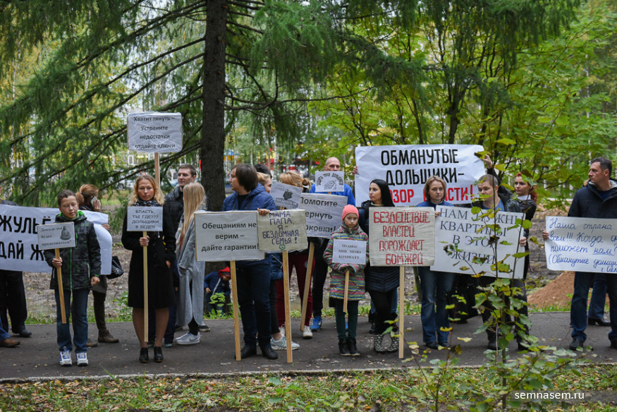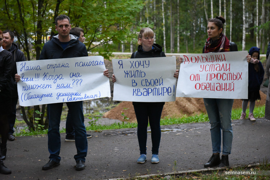 В Мичуринском парке Сыктывкара 15 сентября обманутые дольщики провели митинг, на котором обвинили руководство города и республики в том, что на их проблемы закрывают глаза. Дом в микрорайоне Орбита, куда они должны были заселиться, компания «Томстрой» изначально планировала сдать в конце 2015 года. Но работы не закончены до сих пор, и люди считают, что власти должны им помочь. На митинге побывала корреспондент «7x7».