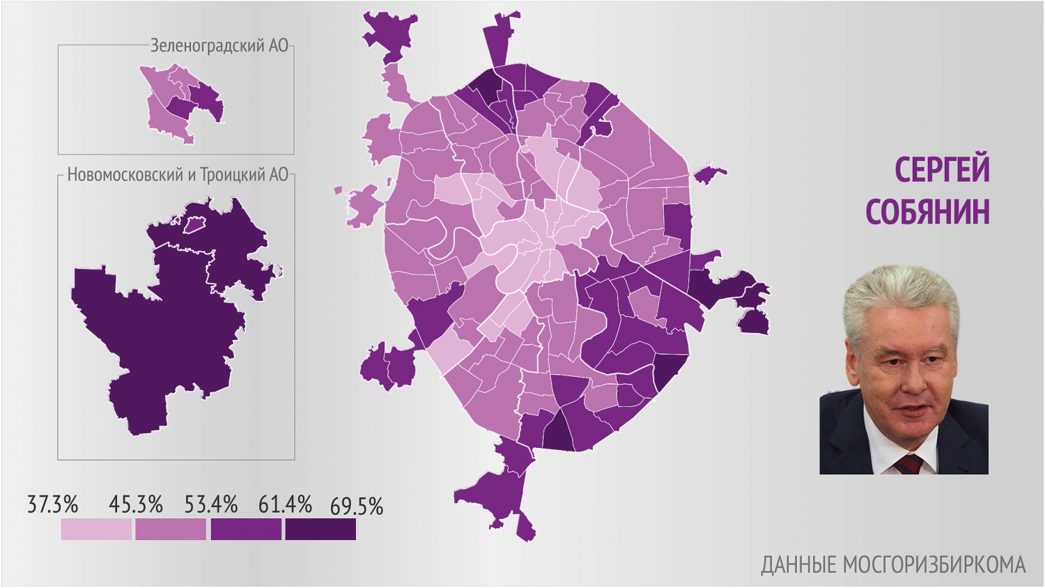 Для тех, кто желает подробностей, наглядные картинки здесь. Интересно сравнить с картой поддержки Сергея Собянина на выборах 2013 года. Территориальная структура предпочтений Москвы довольно устойчива, и зона поддержки демократии в ней невелика. Центр и два блока на Северо- и Юго-Западе. Если 10 сентября на выборы пришли 12–15% московских избирателей, и из них примерно пятая часть за список Гудкова, значит, реальный показатель поддержки до 3%. У Навального в 2013 году было около 9%. От общего списка, имеется в виду, а не от числа проголосовавших.