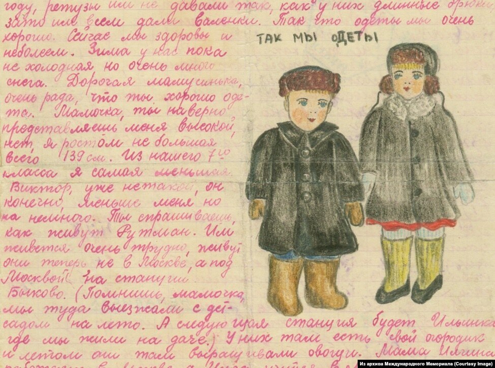 – Здесь очень сложно реконструировать. Но мне кажется, что понимали какие-то общие вещи, которые я и хотел попробовать объяснить на лекции. Что близкого человека нет, он где-то далеко. К нему нельзя приехать, тем не менее он где-то там, и он жив, и есть надежда, что он вернется. А почему он там, виноват ли он? Это тоже все проявляется, но уже скорее в письмах, например, подростков. Или когда ребенку, например, нужно вступить в комсомол, когда возникает какой-то политические или идеологический вопрос, это все позже. Как правило, до 12–13 лет – это скорее такие совсем простые и семейные письма.
