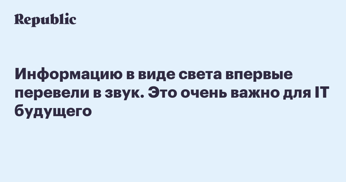 Информацию в виде света впервые перевели в звук. Это очень важно для IT будущего