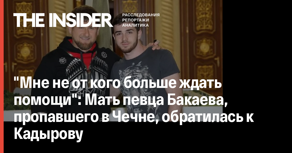 Малика Бакаева, мать певца Зелимхана Бакаева, пропашего в центре Грозного, записала аудиообращение к главе Чечни Рамзану Кадырову с просьбой помочь найти сына. На запись обратило внимание издание «Кавказ.Реалии».