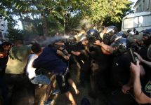 "Участники акции нарушали общественный порядок, распылили в сторону сотрудников полиции слезоточивый газ, бросали взрывные пакеты и бросали в сотрудников полиции и служебный автобус тротуарной плиткой", - заявили в полиции. По факту произошедшего полиция открыла уголовное дело по части 4 статьи 296 УК Украины (хулиганство, совершенное с применением оружия).