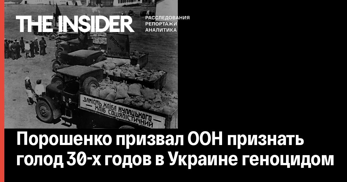 Президент Украины Петр Порошенко обратился к Генеральной Ассамблее ООН (которая совпала с 85 годовщиной массового голода в Украине) и призвал признать массовый голод в стране в 1932 - 1933 годах актом геноцида. Его слова приводит «Дождь».