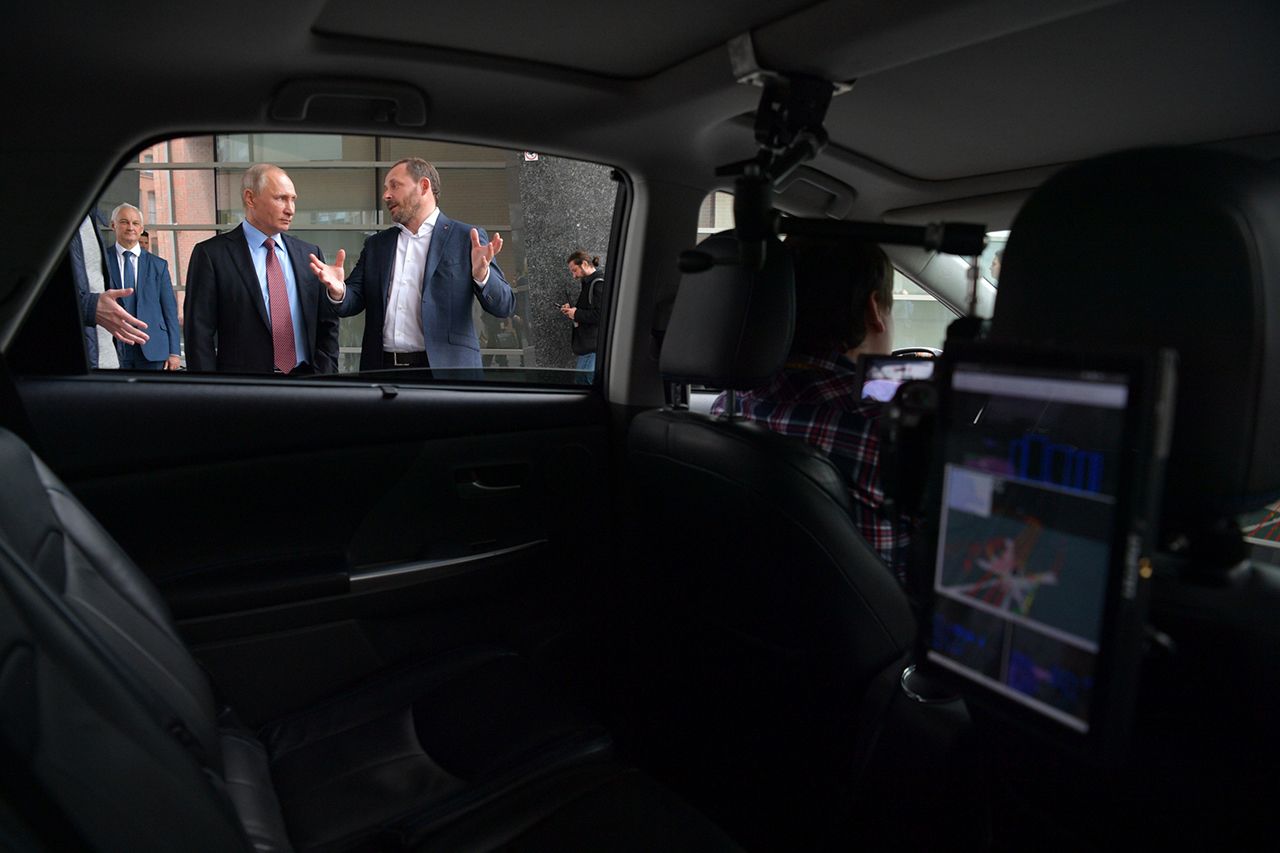 Последним пунктом программы была демонстрация прототипа беспилотного автомобиля, который «Яндекс» разрабатывает с 2016 года. На глазах президента «Тойота» объехала двор компании. Садиться внутрь автомобиля «Яндекса» Путин не стал и довольно быстро после этого сел в свой кортеж и уехал в Кремль. К трем часам там его ждали бизнесмены.
