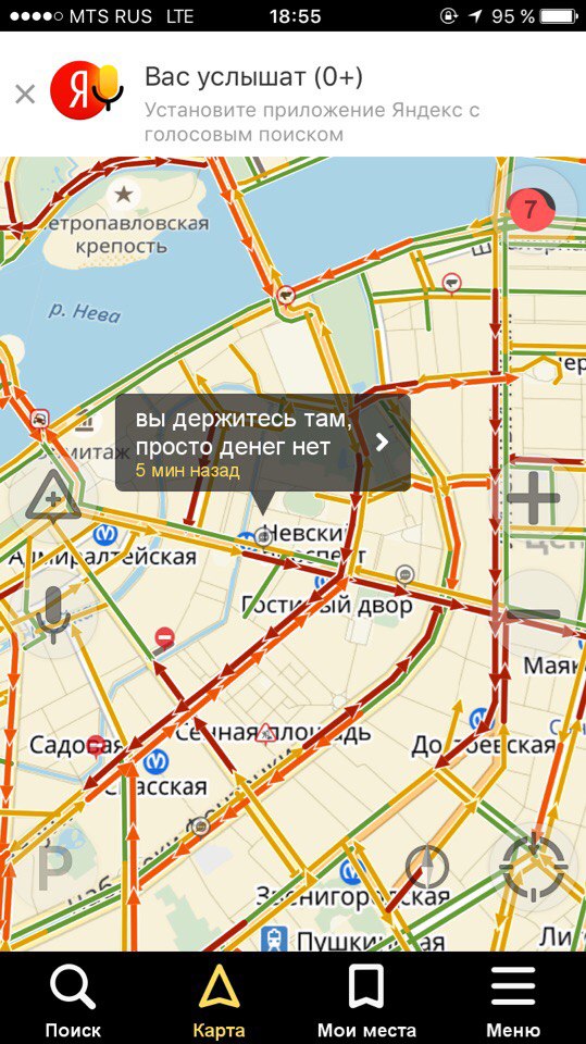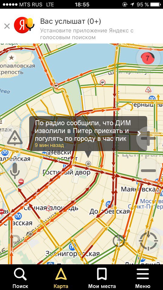 В мобильном приложении «Яндекса» водители возмущаются тому, что центр города перекрыли в час пик.