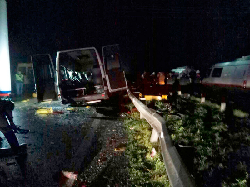 Микроавтобус следовал со стороны Калининграда, внедрожник Mercedes двигался в сторону областного центра, машины столкнулись по касательной на встречной полосе движения. В результате, кабина микроавтобуса смята, на месте погибли его водитель и трое пассажиров, еще три пассажира микроавтобуса скончались по пути в лечебные учреждения. Находившиеся во внедорожнике выжили, в том числе семилетняя девочка.