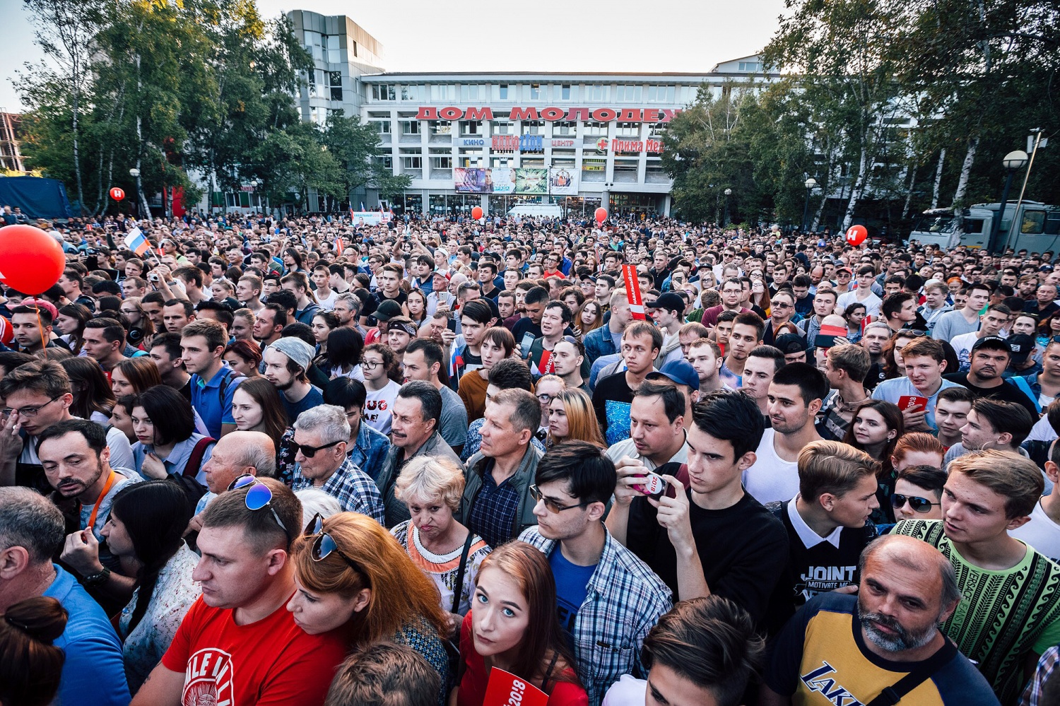 Еще до выступления Навального на сцену вышли отличившиеся волонтеры регионального штаба, среди них был и Семен — ему дали микрофон и предложили сказать речь. «Ничего не бойтесь!» — крикнул со сцены школьник, после чего микрофон перешел к главному оппозиционеру.