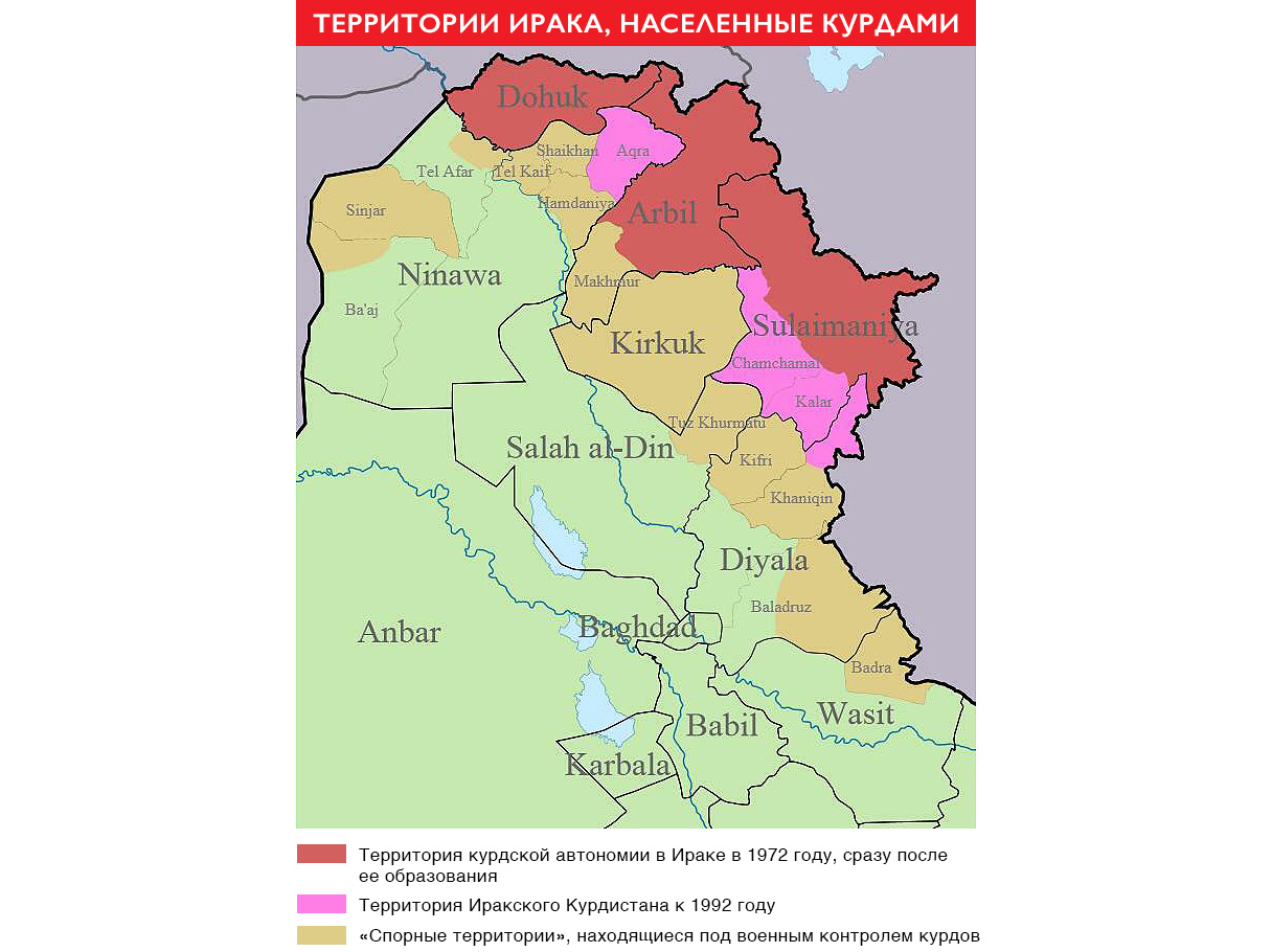 О том, что власти курдской автономии в Ираке, гордо именуемой Иракским Курдистаном, хотят провести референдум о независимости региона и прилегающих к нему спорных территорий, стало известно в июне 2017 года. Причем они и не скрывали, что цель голосования — выход из состава Ирака, в котором Курдистан имеет статус федерального региона с высокими полномочиями — вплоть до собственной погранслужбы, таможни, полиции, вооруженных сил (пешмерга) и права по собственному усмотрению распределять прибыль от нефтедобычи. Глава курдской автономии Масуд Барзани (кстати, срок его полномочий истек еще в августе 2015 года) заявил тогда: «25 сентября будет день голосования. Пути назад нет, это решение необратимо».