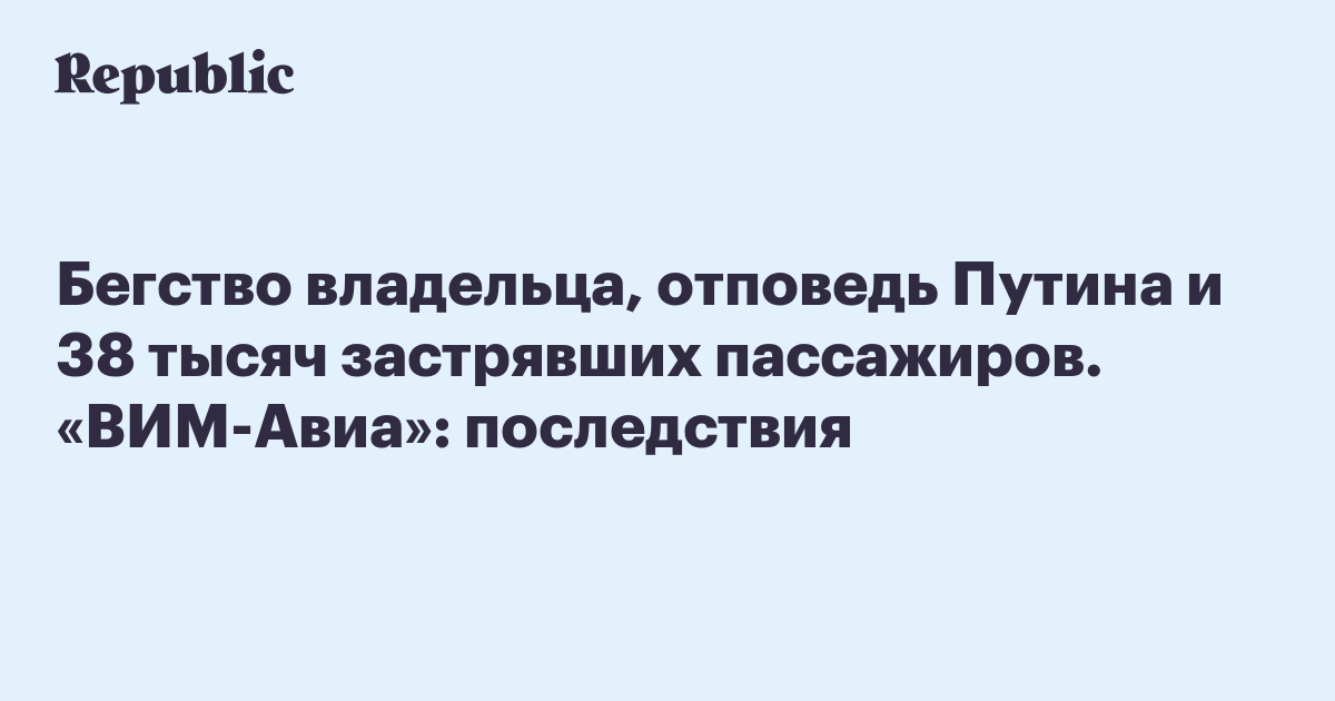 Бегство владельца, отповедь Путина и 38 тысяч застрявших пассажиров. «ВИМ-Авиа»: последствия