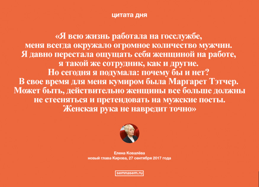 Глава Кирова Елена Ковалёва: Женщины все больше должны претендовать на мужские должности