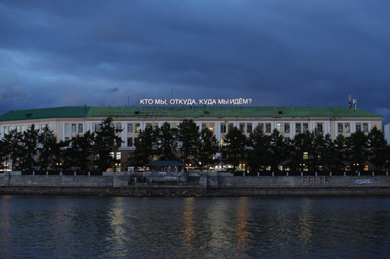 На биеннале еще есть много чего посмотреть. Жоан Рибас собрал по-настоящему крепкую экспозицию, на выставке не скучно. Да и функционировали все видео-, аудио- и прочие инсталляции уже на открытии, а не так, как у нас обычно принято. Единственный вопрос — что дальше? После тех тем, которые биеннале за четыре раза перебрала, совершенно непонятно, что же может зацепить на V Уральской биеннале. Символично, что на крыше приборостроительного завода Тимофей Радя установил надпись «Кто мы, откуда, куда мы идем?». Но у них там, как показывает практика, всегда есть ответ.