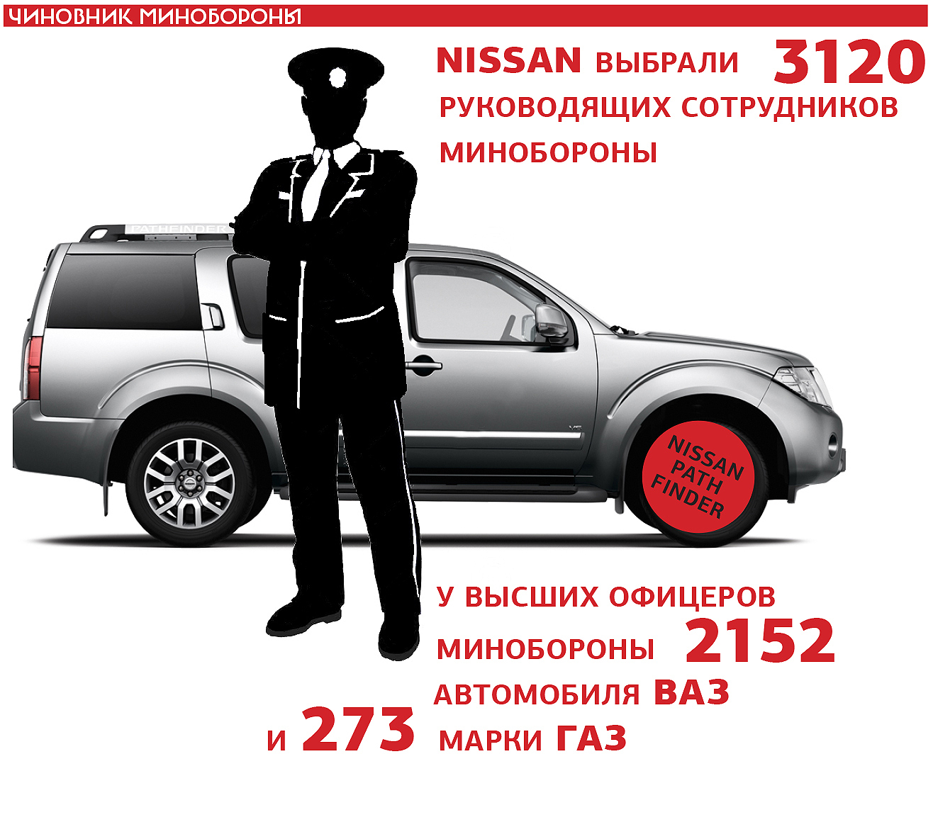На втором месте по популярности — Nissan. Этот японский бренд популярен среди 8% госслужащих. На этом транспортном средстве передвигаются 3329 чиновников. Подавляющее большинство этих автомобилей (более 3 тыс.) оказалось в гаражах у чиновников Минобороны.