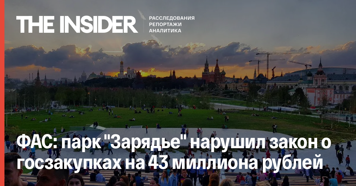 Администрация московского парка «Зарядье» разместила тендер на услуги по уборке парка с сервисным обслуживанием стоимостью 43,4 миллиона рублей. Как сообщает московское отделение ФАС, при организации конкурса парк нарушил федеральный закон о госзакупках.