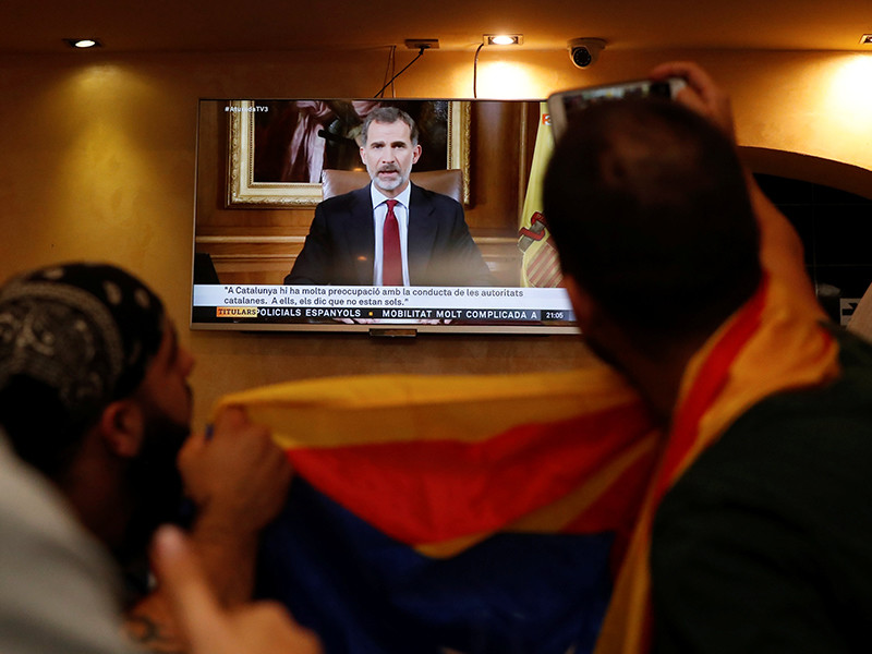 Король Испании Филипп VI спустя два дня после референдума в Каталонии, по итогам которого большинство местных жителей высказались за независимость и отделение от Мадрида, выступил с обращением к соотечественникам и указал на безответственность властей Каталонии, обвинив их в желании нарушить единство Испании, пишет El Pais.