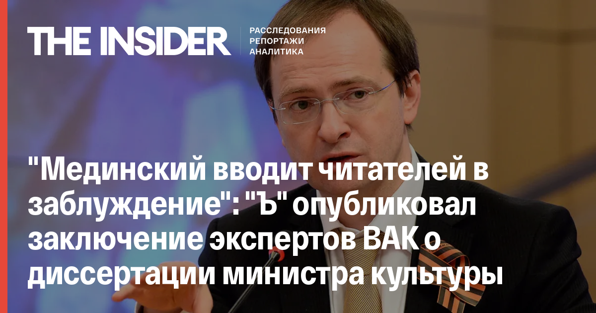 "Мединский вводит читателей в заблуждение": "Ъ" опубликовал заключение экспертов ВАК о диссертации министра культуры