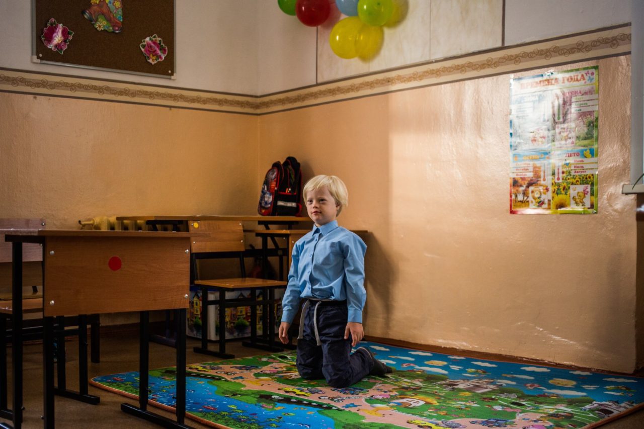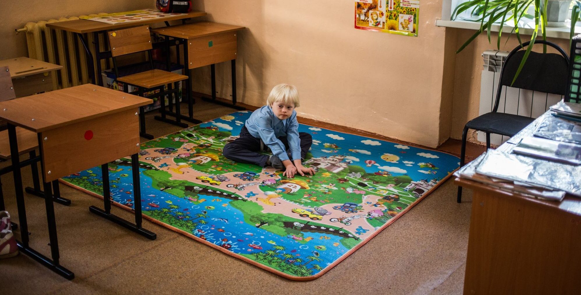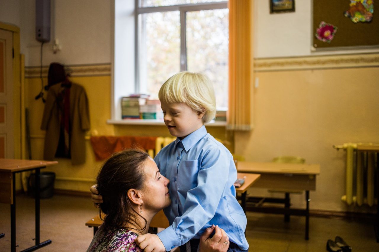 Даня в школьном кабинете. Игровой коврик появился недавно вместе с новыми требованиями по обеспечению учебного пространства. Изначально предполагалось, что на коврике дети будут отдыхать между занятиями, но по факту дети большую часть времени стремятся провести на коврикеФото: Антон Климов для ТД В России ежегодно рождаются около семисот детей с синдромом Дауна. Какой бы продвинутой ни была современная система ранней диагностики, на практике до сих пор родители часто узнают о диагнозе только после рождения малыша и испытывают шок. Вместо поддержки и консультации специалистов чаще всего в роддомах молодые мамы слышат совет написать отказ, забыть и родить себе нового. Их пугают, что ребенок будет «как овощ». Неудивительно, что от половины детей, родившихся с синдромом Дауна, отказываются в первую неделю их жизни.