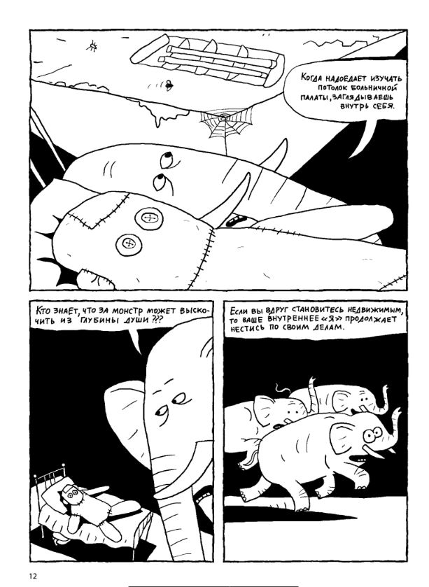 «Лена сделала главным героем книги слона, но это, конечно, аллегория. Слон — это сквозной образ в моем творчестве. Каждый человек раним, а столкнувшийся с инвалидностью особенно. Первые годы уходят просто на то, чтобы принять себя, и в это время некуда деться от разделения мира на внутренний, оставшийся прежним, и внешний, с массой ограничений. Чтобы не потерять самообладания и не отвлекаться на чужие слова, сказанные неосторожно, нужна толстая ментальная кожа — своеобразный костюм слона, защищающий тебя от посттравматических переживаний», — рассказал Владимир.