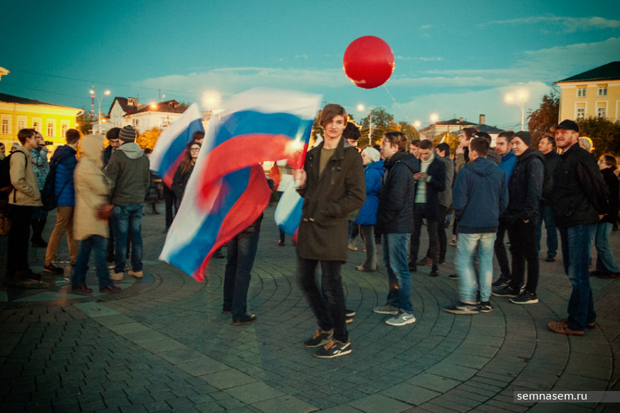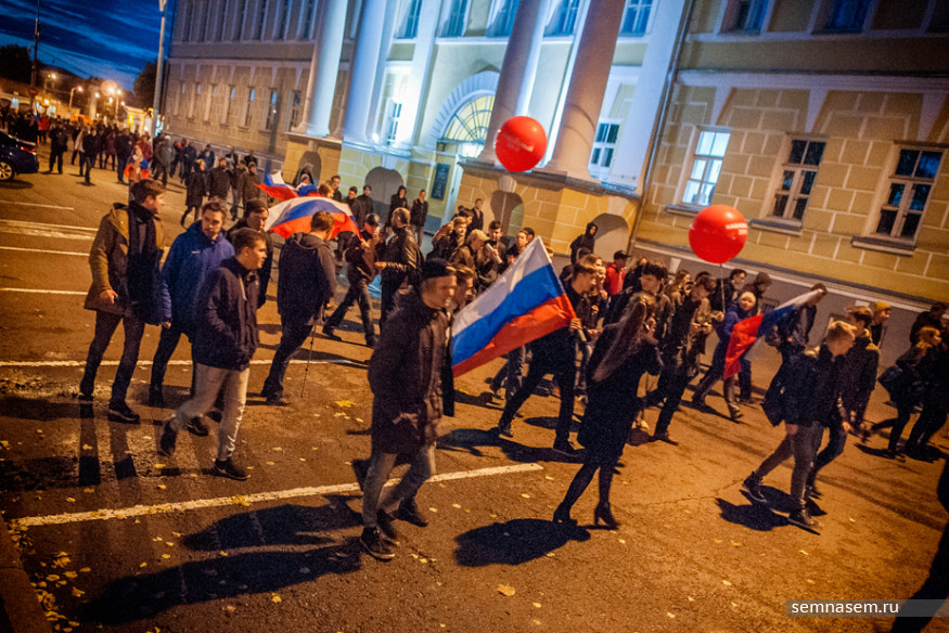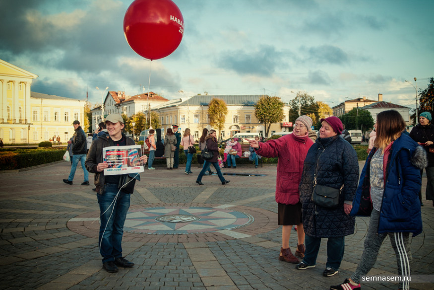 Незадолго до начала акции сторонников Навального стало известно, что на Сусанинской площади, где они планировали собираться, пройдет концерт, посвященный Международному фестивалю молодежи и студентов. Тем не менее в 18:00 в центре площади возле пикетчика, держащего красный воздушный шар, собралось более 70 человек, в основном — молодые люди студенческого возраста. К ним присоединились активисты штаба Навального с шарами и российскими флагами.