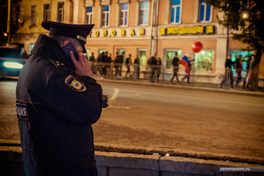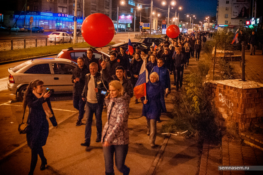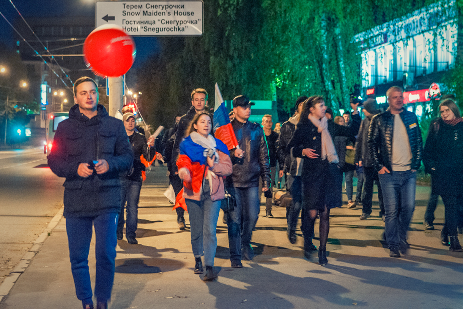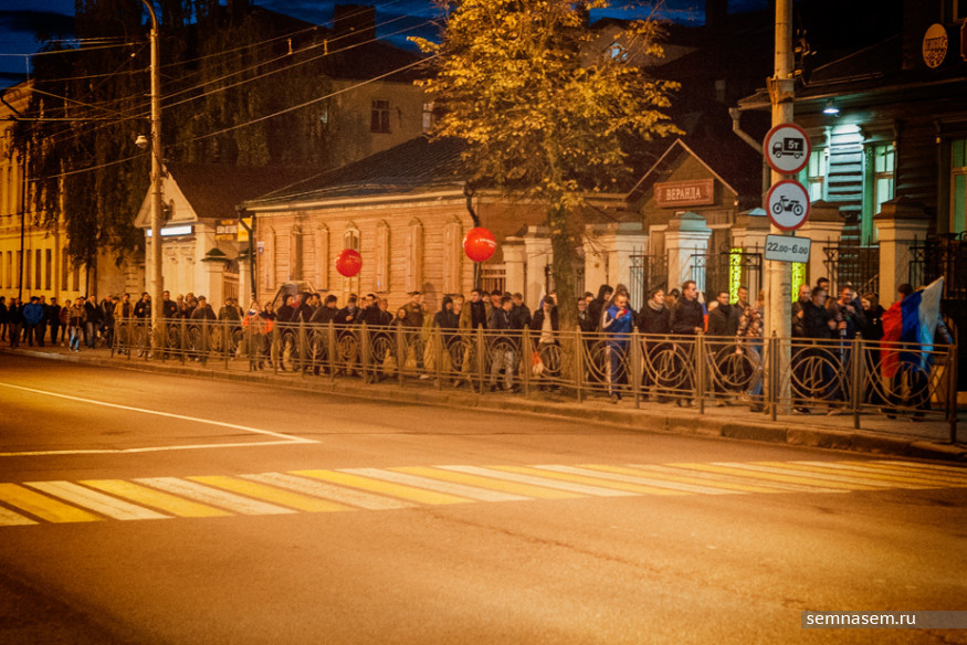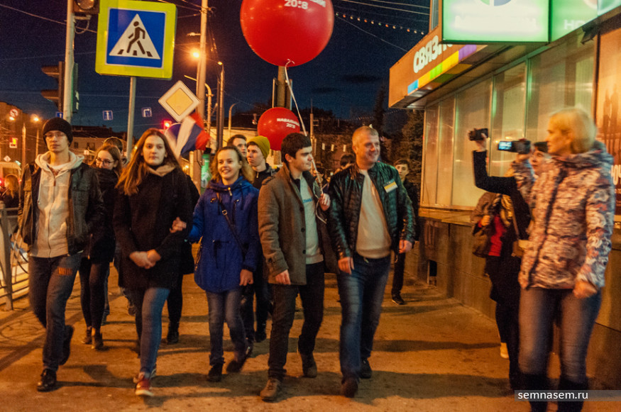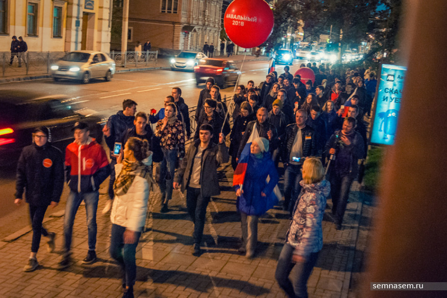 Общая численность участников акции превысила 100 человек. Собравшиеся несколько раз проскандировали «Путин — вор!» и двинулись по тротуару улицы Советской в сторону Октябрьской площади. Сделав небольшую остановку возле универмага, они продолжили движение до Привокзальной площади, перешли на другую сторону улицы и направилась обратно, к центру города.