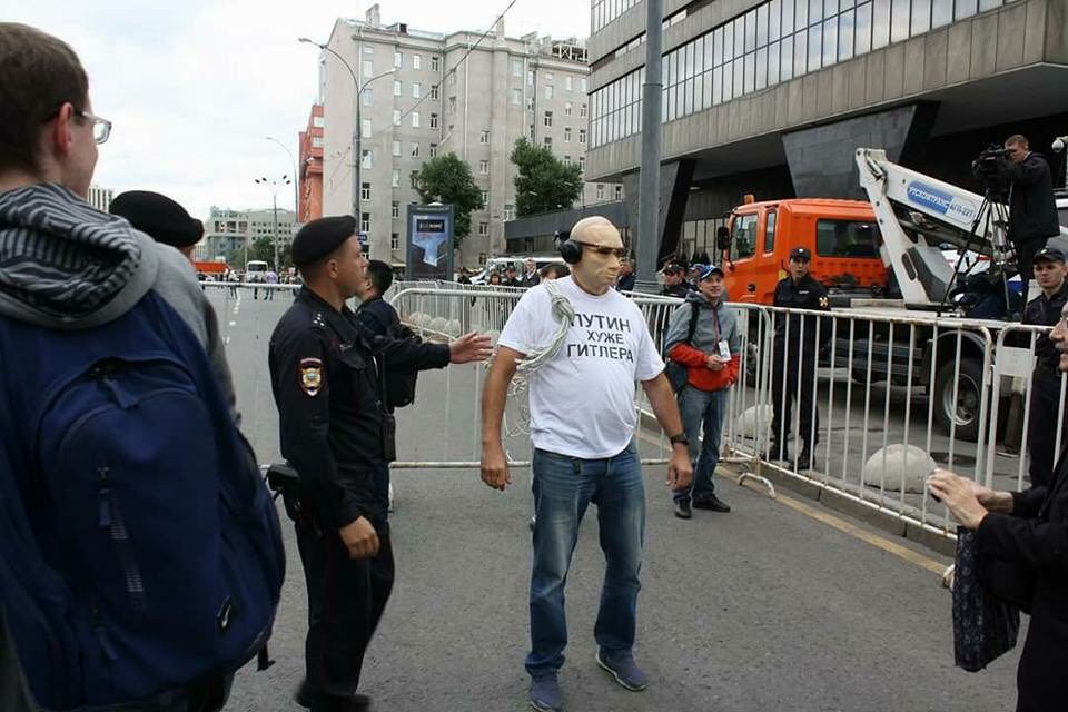 — Я в суде пояснил, что воспользовался своим конституционным правом на собрание и выражение своих мыслей, что делал в виде маски. "Путинский режим" и сам президент в ответе за те законы, которые принимаются депутатами Госдумы. Взять тот же недавно принятый закон о гласности переписок в Интернете. Личность я свою не скрывал и готов был показать по требованию паспорт. Но сотрудники полиции решили, что эффективнее будет скрутить меня и бросить незаконно на четыре часа за решётку, — сетует Ельмаков.