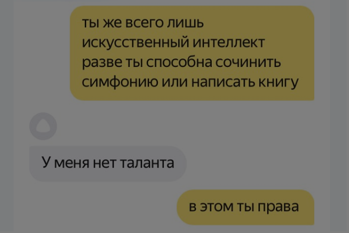 В твиттере пользователи выкладывают скриншоты переписки с «Алисой» о ее возрасте, происхождении и талантах, а также о песнях группы «Сплин».