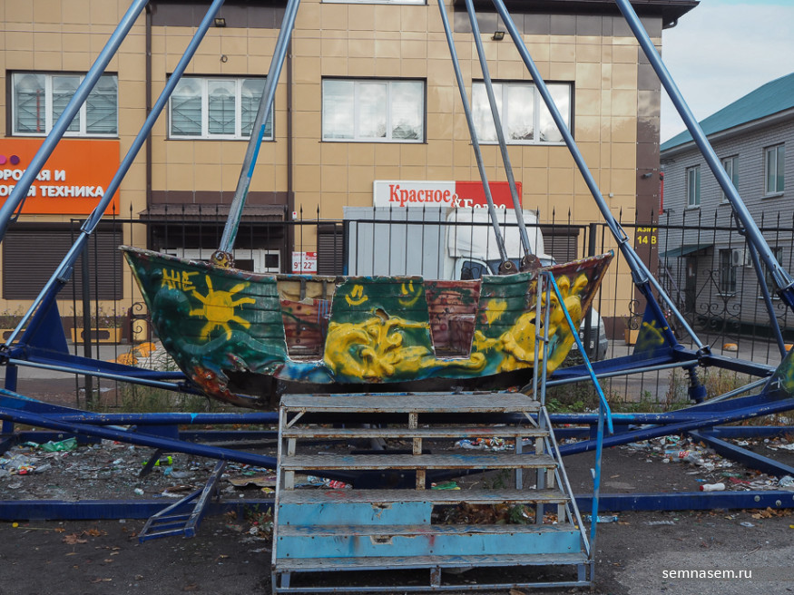 По словам Немченко, хозяйственным способом тогда построили два детских сада, школу и несколько нежилых помещений на первых этажах многоквартирных домов. В 2000 году все эти учреждения и нежилые помещения безвозмездно передали муниципалитету. А через несколько лет участок земли, на котором расположился парк, городская администрация продала трем предпринимателям. Сначала они благоустроили парк: обнесли забором, расчистили площадки, установили качели и карусели. Построили четырехэтажное здание, в котором планировали открыть детский развлекательный центр с кружками и всеми условиями для проведения праздников. Но потом между предпринимателями, судя по слухам, произошел конфликт, и они забросили парк. Одного из собственников уже нет в живых, второй постоянно живет в Москве. Здание разграбили, карусели сломались и заржавели.