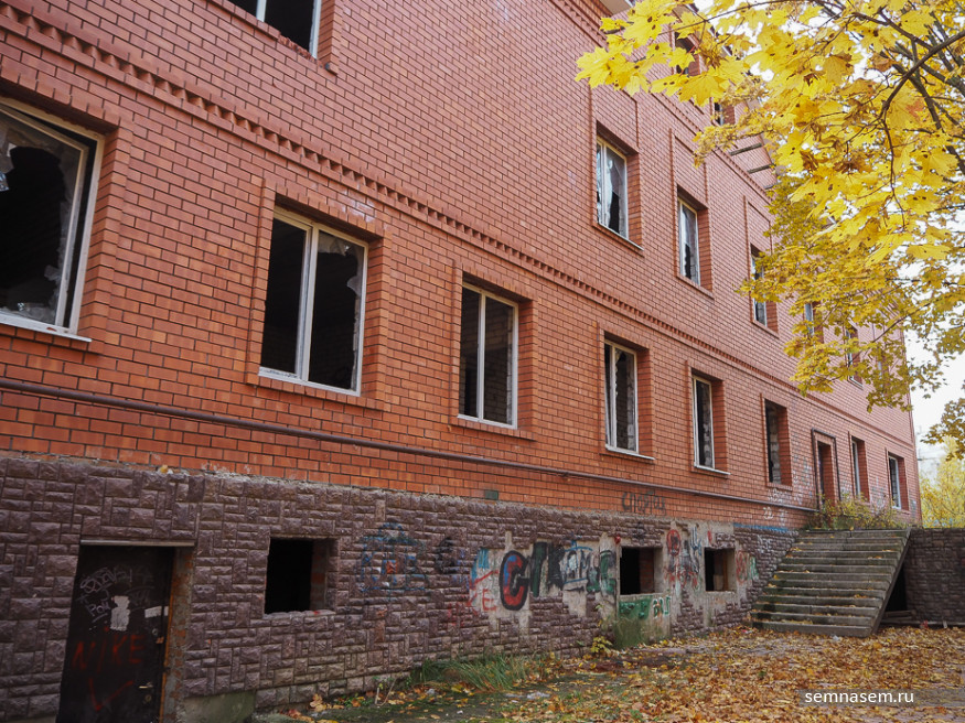 Парк АЗМР небольшой, чуть меньше среднего футбольного поля. Здание из красного кирпича, с высоким цокольным этажом, с небольшой мансардой и круглым слуховым окном кажется новым, недавно построенным. Но в современных рамах выбиты стекла, спилены трубы, облицовка цоколя изрисована. Сантехнику растащили. Уже позже входную и подвальную двери заварили и опечатали. По словам местных жителей, заброшенное здание стало приютом для бездомных и алкоголиков.