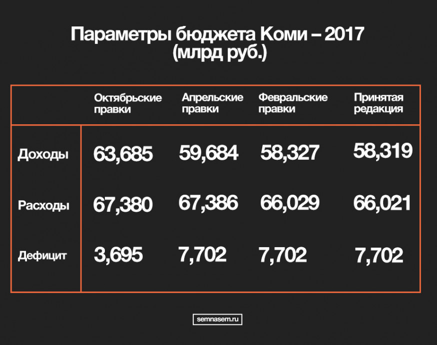 Государственный Совет Коми 26 октября рассмотрит очередные поправки в бюджет республики на этот год. Правительство региона предложило увеличить доходы на 4 млрд руб. и почти на эту же сумму сократить дефицит, перераспределить часть средств между госпрограммами и министерствами. Куда направят дополнительные деньги, а где сократят финансирование — в обзоре «7x7».