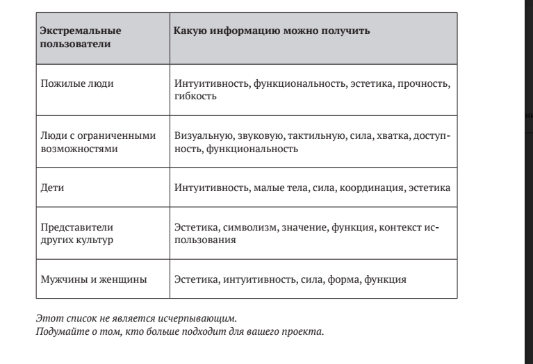 Экстремальные пользователи – это люди с уникальным жизненным опытом. К ним можно отнести пожилых людей, детей, людей с ограниченными возможностями, иностранцев. Прямая противоположность «средним» пользователям.