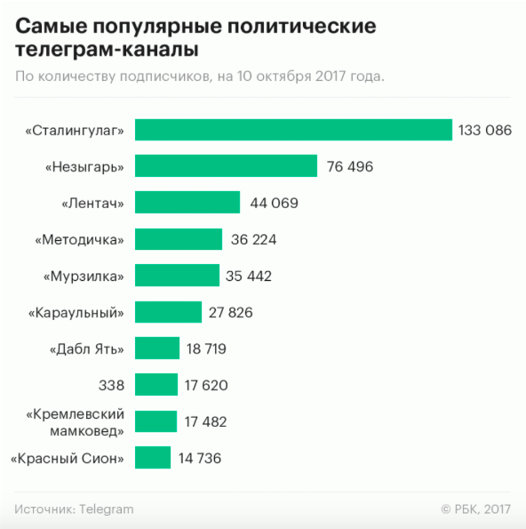 Кроме новых губернаторов, работу с избирателями в регионах перед выборами будут вести и непосредственно из администрации президента – через специально создаваемые анонимные политические каналы в Telegram. Как выяснил РБК, власти запустят в крупных городах сеть примерно из 100 таких каналов для формирования повестки перед выборами президента. Анонимные политические каналы действительно пользуются в России успехом. Вот топ самых популярных: